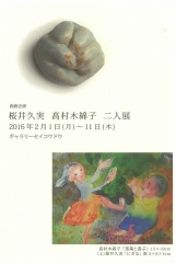 武蔵野美術学園 造形芸術科非常勤講師・桜井久実先生の展覧会が開催されます。 ぜひご高覧ください。 桜井久実 ?村木綿子 「二人展」 2016年2月1日(月)〜11日(木) 11:00-18:30(最終日17:00まで) 日曜日休廊 ギャラリー セイコウドウ 〒104-0061 中央区銀座1-8-21 青光堂ビル5階 TEL:03-3561-6984 銀座線京橋駅2番出口より徒歩2分 有楽町線銀座一丁目駅7.8.9番出口より徒歩1分