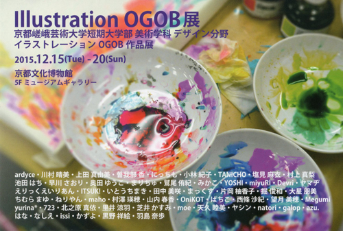 JUGEMテーマ:展覧会 展覧会の告知がかな〜りおそくなりました。 京都文化博物館で京都嵯峨芸術大学のイラストレーションコースの OG&OB展が開催します! 今回のテーマは『LIFE』です。 ◎2015,12/15(火)〜12/20(日) 10:00〜18:00 ◎場所:京都文化博物館 5F たくさんの年齢層の作品が一挙に並びます☆ お時間よろしければ是非いらしてください〜! ↓よかったらぽちっと押してください〜♪ にほんブログ村