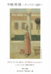 武蔵野美術学園 造形芸術科 非常勤講師・中嶋明先生の個展が開催中です。 是非ご高覧ください。 中嶋明展 −テンペラ・油彩− 日時:2015年12月14日(月)~23日(水) ※20日(日)は休み 11:00~19:00(最終日は17:00まで) 場所:東京・銀座 ぎゃらりいサムホール 〒104-0061 東京都銀座7丁目10-11 日本アニメーションビル2階 TEL:03-3571-8272 http://www7.airnet.ne.jp/thumhole/