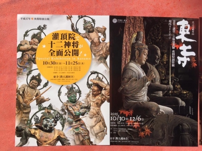 東寺で特別公開開催中! 東寺での講堂の拝観五十周年記念「曼荼羅世界に入る」では いつもは見られない仏像群の後ろ姿を公開。12月6日(日)まで。 灌頂院「十二神将のすべて」で、東寺の金堂の薬師如来の台座にくっついてる 十二神将が取り外されて、360度拝観できるように、灌頂院に安置されている。 11月25日(水)まで。 国宝 五重塔初層も、中に入れて仏像群が特別拝観できる。11月25日(水)まで。 (画像をクリックすると大きくなります) ~~~~~~~~~~~~~~~~~~ 願興寺の秘仏「薬師瑠璃光如来像(重文)」特別公...