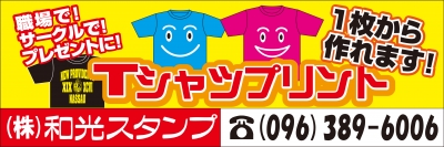 JUGEMテーマ:Tシャツ デザイン JUGEMテーマ:Tシャツ デザイン 熊本県熊本市・東区・西区・北区・南区・中央区・ 菊池市・合志市・菊陽町・大津町・益城町・西原村・御船町近隣の 実印・銀行印・ゴム印・名刺・ハガキ印刷・年賀状・喪中印刷の はんこ屋(印鑑・印刷専門店) ☆★☆★☆★☆★☆★☆★☆★☆★☆★☆★ あなたの名前をデザインする HANKOクリエーター 和光スタンプ ☆★☆★☆★☆★☆★☆★☆★☆★☆★☆★ Tシャツプリントのホームページはこちらから Tシャツプリ...