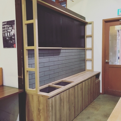 パン屋さんの家具をデザイン製作させていただきました。 カゴの返却台とダストボックスを兼ねたカウンターで、 上部の黒板にお知らせなど直接書き込めるようになっています♪ タイルは平田タイルの「Subway」を使用しました。 カッコイイタイルです。 『あすなろベイキングカンパニー』様 所在地:東広島市西条土与丸3丁目1...