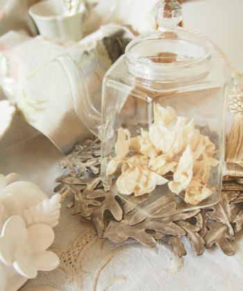 JUGEMテーマ:フランス直輸入家具・ブランディボワール・MIS EN DEMEURE 5月1日の母の日に素敵な贈り物をお届けます。 センスのいいあなたからお母さまへ。 アトリエ ジュンコ コレクションの中からティーポットとポットスタンド。 ティーポットはシンプルで使い勝手のいい耐熱ガラス製。 大胆なオークリーフのモチーフはテーブルに置いておくだけで絵になります。 実はこちら壁掛けにもなるのです。 造形的にも美しくお部屋のインテリアとしても素敵。 こちらはフランスのレース...