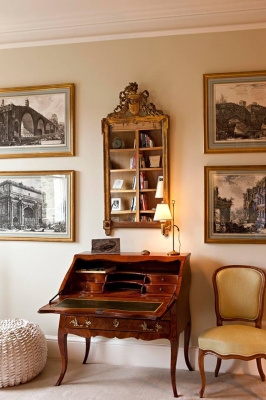 JUGEMテーマ:インテリアデザイン アンティークの家具の周りに・・・ 銅版画の風景画がきれいです!! 同じサイズの額で統一してすっきりと
