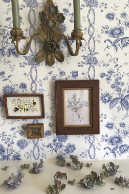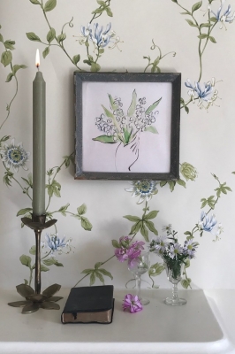 JUGEMテーマ:インテリアデザイン トケイソウの壁紙とオリジナルのボタニカル・アート 同系色でまとめておしゃれですね〜