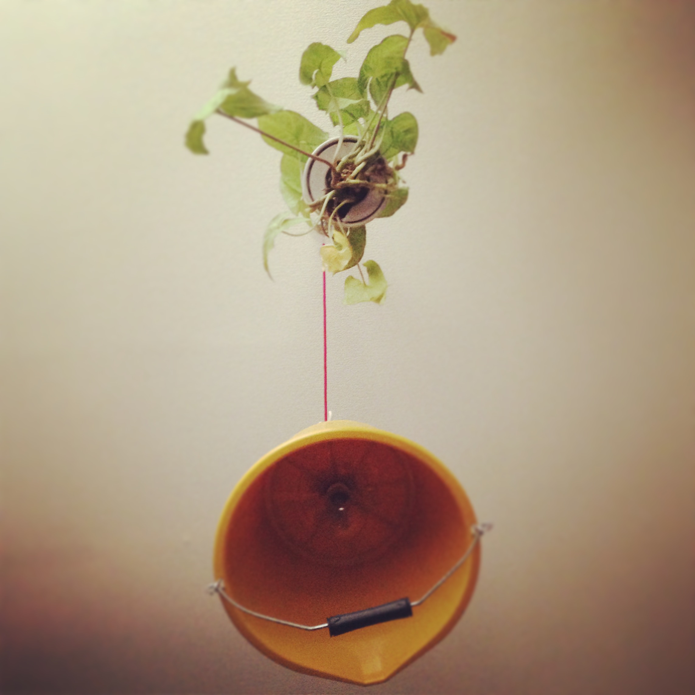 JUGEMテーマ:インテリアデザイン 数日前のコト。 前日の夜に飲み過ぎて、朝は少し二日酔いで。 寝ぼけ眼でベッドから起き上がるもそのまま床にごろん。 ふと上を見上げるとこんな光景が眼に入ってきたので なんとなくパチリ。 イギリスの工業用バケツを逆さにした ブリングミーサンシャインライトと 逆さ吊りの植物、スカイプランター。 こんな感じでそれだけを見ると まるで自分が天井から見下ろしているようで なんだか気持ちよくなり、気付くと二度寝してました。 ...