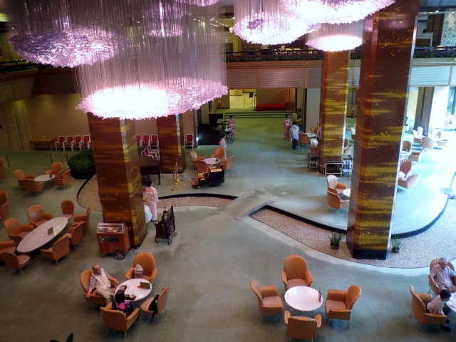 JUGEMテーマ:インテリアデザイン 中の島リーガーロイヤルホテルのラウンジには川が流れています。 滝と渓流のある和風庭園を眺めながらゆっくりとコーヒーを楽しむのもよし。 2階にあるバンケットホワイエ(フリースペース)からくつろぎながら望むのもおすすめです。 眼の前にガラスピースで構成された空の雲をイメージしたシャンデリアが柔らかな光を投げかけてくれます。 天井からガラスピースがワイヤーでひとつひとつつられてバラ色のきらきらした光のクラフトで空間を 包んでいます。 インテリアは...