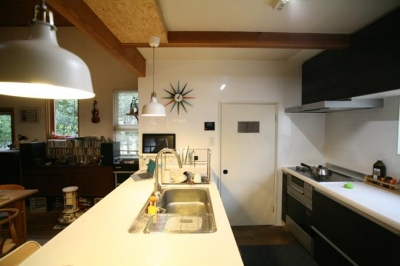 I邸リフォームの状況です。キッチンパネルを貼っています。 キッチンパネルは掃除がしやすく、お手入れが簡単です。 手前はIKEAの照明器具です。アルミセードにアイボリーの艶消し 塗装仕上げです。キッチンはクリナップの中級のものを選択、 天板を1m幅のものに替えるので、手元照明が必要となりました。 逆に洗濯室の扉が古めかしくていい対比を生んでいます。 JUGEMテーマ:インテリアデザイン