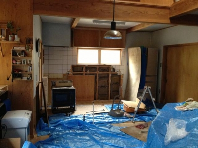 I邸リフォーム現場です。 リビングルームは養生シートに覆われて、暫く暖かい団欒とは 無縁の避難生活をしなければなりません。これはリフォームをされる お客様にとっては避けて通れないところです。考えようによっては 外食も出来るし、コンビニ弁当で済ましたり、銭湯へ通ったり、 変化のある生活も楽しめます。 バスユニットを取り外しているところです。築19年の重みが ところどころ伺えます。 以前巣を作っていたスズメバチの巣がバスユニットの天井裏に 残っていました。スズメバチが生...