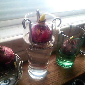 冬はお花が無くて寂しいですね。ちょっと遅いけどヒヤシンスの水栽培にチャレンジしてます。本当は去年の内に仕込めば今頃咲いてるんですが…環境に気を付ければまだ間に合うでしょう。 仕込みは、氷点下にならない程度の寒い所でお皿に水を張って球根を並べます。根が出るまで箱を被せて陽の光を遮断します。冬は意外と乾燥するのでお水が無くならない様気をつけて管理します。 白い根っこが出てきたら箱から出して、画像のようにお水を張ったグラスにセットします。冬→春になったと球根に...
