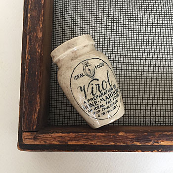 長い歴史を持つVirolのポット。 当時、子供の栄養補助食品がはいって販売されていたもので、 深みのあるアイボリー色、形、文字どれをとっても個性的です。 陶器製は、ガラス製品が出来る1915年までのものと推定されます。 詳細はこちら 使い勝手のよいサイズのビンテージバスケット。 文庫本を縦にして15冊ほど入る大きさです。 経年変化による藤が味わい深いアイテムです。 詳細はこちら たっぷりとはいるイギりス製...