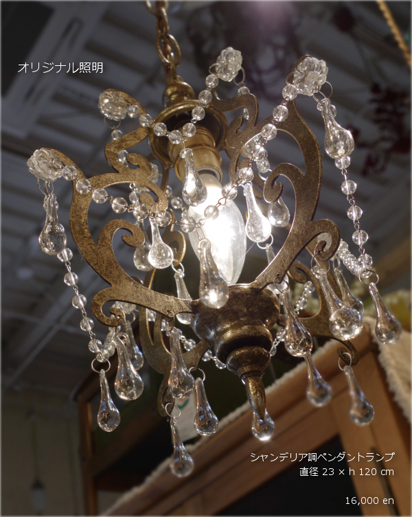当ショップで制作している ペンダントランプが2種類完成しました 最初に ヴィンテージゴールドメタルのベースに ティアドロップ形のガラスのしずくが下がる ペンダントランプからご覧いただきましょう クラシカルさと可愛さが特徴のランプ 全長も120センチと長いので 様様な場所に適合できます また チェーンを掛け交えることで 短くするのも簡単です パーツのひとつひとつにまでこだわりぬき キラメキとヴィンテージ感を両立しました イメージと...