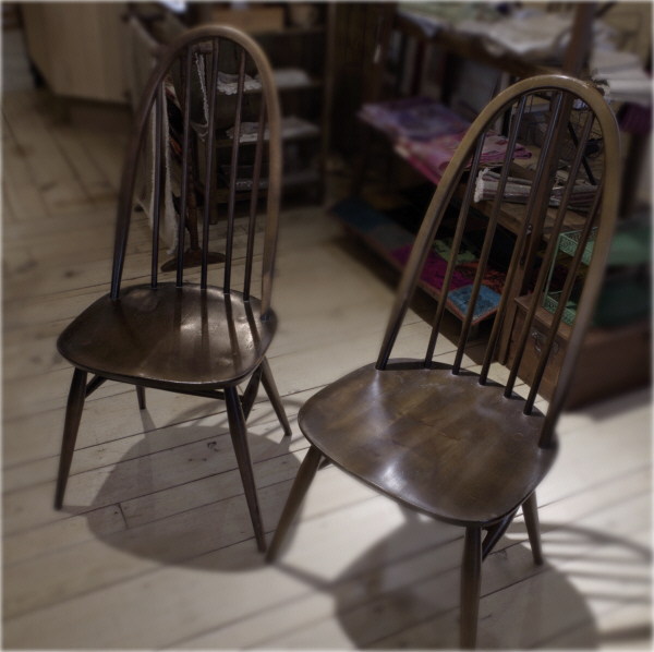 いつものように ヴィンテージアイテムが いくつか入荷してきています このチェアからご覧ください イギリスの古いウッドチェアが2脚 老舗家具メーカー アーコール社のものです そのアーコールを代表するデザインのひとつが このクエーカーチェアです 背もたれのエレガントなフォルムが特徴 固い木を水蒸気で蒸し 弓のように曲げてしまう「曲げ木」の技術によるもの オールドパインのテーブルに合わせてみました 素敵ですね ♪ そして この優雅なラインは見た目にとどまらず ...