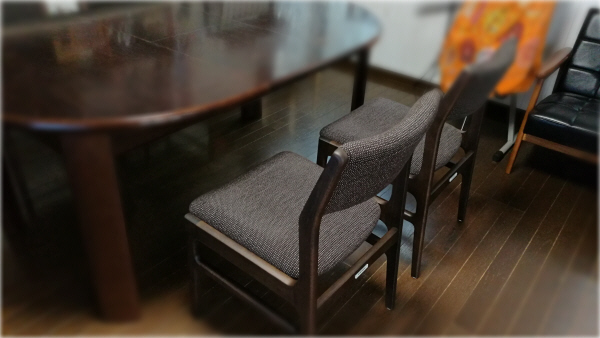 今日のお届け先は 小倉南区のK様 先日Kチェアーをお届けさせていただいたお宅です そこへ ダイニングチェアーを4脚 K様はお持ちのテーブルに このシックで可愛いチェアーを合わせられました 素敵なダイニングシーンになりましたね ♪ 張り地はミランブラックファブリック この布地の織りがとても可愛いんです 下層のブラックの上に ブラウン地が格子のように折り重なり さらにその隙間をベージュのループステッチが 不規則気味に点在します アップで見るとこんな感じで...