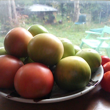 お野菜 高いですね。あひる用に、安い青いトマトを窓辺で熟成させてます。 夏中、あひるにたんまりトマトを食べさせてましたがそろそろ終わりです。でも、いきなり大好きなトマトを食べられなくなるのも可哀想です。熟してない青いトマトが漬物用として安く売ってたので買いました。お日様に当てたら赤くなるだろう、と皿に盛って窓辺に置いてたら赤くなって来ましたよ。…窓側じゃなく内側の方が!??? 何故だ?なぜだ? と考えてたら、どうもガラス越しのお日様の光より部屋側の蛍光灯の灯かりで熟したようです。&helli...
