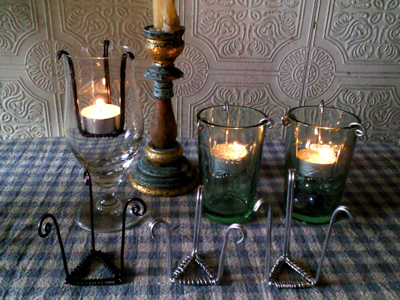 久しぶりに雑貨レシピです。 お気に入りグラスでキャンドルを灯す【ワイヤークラフトのキャンドルホルダー・1】 お手持ちのお気に入りグラスがキャンドルホルダーに変身するワイヤークラフトです。市販のティーキャンドルと盆栽用のアルミワイヤーを使います。簡単な構造なので幾つも作ってテーブルにを華やかにして下さい。 ------------------------------------------ ■材料・道具 ・アルミワイヤー・ペンチ ・三角定規 ・直径2〜2.5mm/15〜17cm=3本 (初心者は2mmワイヤーを使う...