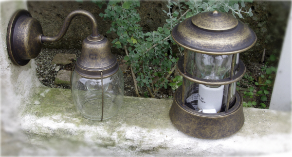 アウトドア対応のランプが2点入荷しました 無垢の真鍮製で雰囲気満点 右側のランタン風なのは レンガや枕木などにチョンと置くとカワイイデスヨ コンナ感じ ♪ グリーンと地面を照らし 路地裏の小路風なイメージに仕上がります 変わって左側のは 壁付けのブラケットタイプ 防雨型ですので ポーチライトとして人気です また シンプルなフォルムなので 室内用にもお使いいただけます 点けたら こんな感じ もうひとつのシリーズは ガラスシェードのペ...