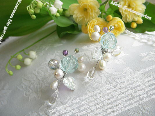 アリエル 蒼い薔薇のピアス Type2 (アクアマリン・アクアオーラ ・アメジスト) 瑞々しいアクアマリンの薔薇が光を浴びてきらきらと 繊細な光を放つアクアオーラやアメジスト。 パールなどを薔薇の蔓のようにあしらった ワイヤーワークの優美なピアスがSALE対象品となりました♪ イタリア製大天使ミカエルのメダイのクリスタル ペンデュラム ...