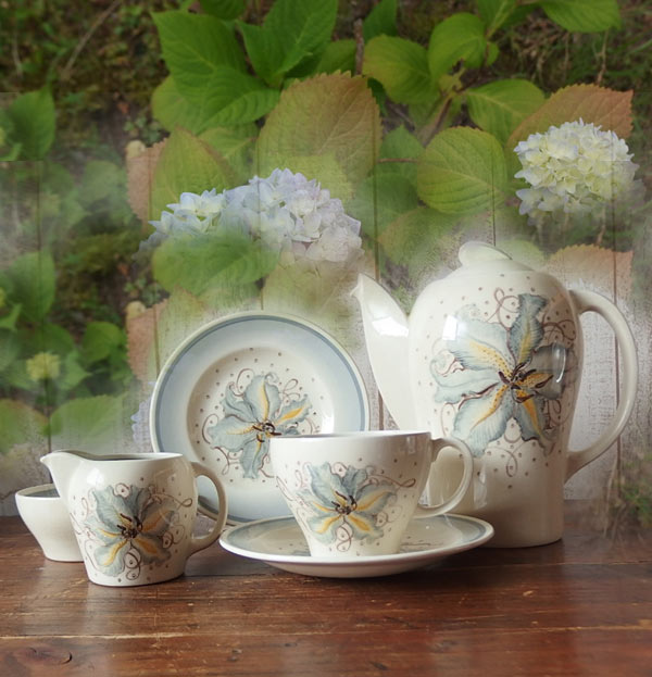JUGEMテーマ:インテリア雑貨 夏の訪れとともに あじさいの季節も近づいてきました 青い花の色はさわやかですね 今日は、あじさいの柄ではないのですが、大ぶりで迫力ある青の花 ブルーオーキッド入荷しています 1950年代のスージーさん お花を一輪だけバーンと大きく捉える構図が多かったのですが、 これもその一連の流れにそったもの 雰囲気は違いますが、在庫でこういうのもございます 商品名はマグノリア お色はいろいろあり、それぞれ魅力がありますけど 青というのは花の...