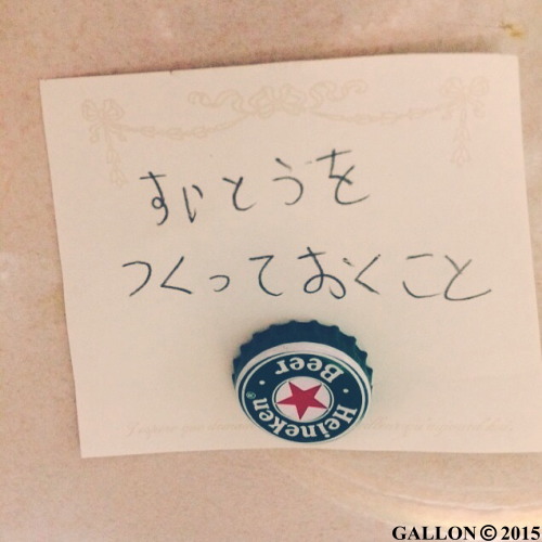 BEER BOTTLE CAP MAGNET / PHOTO : Higa お客さんから王冠マグネットの写真をいただきました。 娘さんがメモ留めに使っているそうです。すいとうをつくっておくこと。遠足でも行くんでしょうか。なんだか和むいい写真です。 ・BOTTLE CAP MAGNET / Heineken(王冠マグネット / ハイネケン) GALLON http://www.gallon.jp (ガロン / 革製品、革小物、真鍮アクセサリー、レザーグッズの通信販売専門店) ホームページ : http://www.gallon.jp 通販サイト : h...