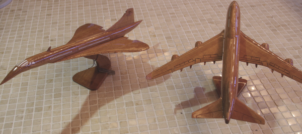 久しぶりの入荷品のお知らせは コチラ すべてウッドの航空機の飾りモノです サイズは30センチ以上あって存在感があります 削りだしの木目に艶のあるクリア塗装仕上げ スタンド部分まで同じ木で出来ているのがポイント クラフトマンシップデザインにこだわった作りです さっそく見ていきましょう お馴染みのジャンボ機と コンコルドジェット機の2種類 木のコンコルドって なんか不思議な感じがします では 両機のエンジン部分をみてみましょう 木でコ...