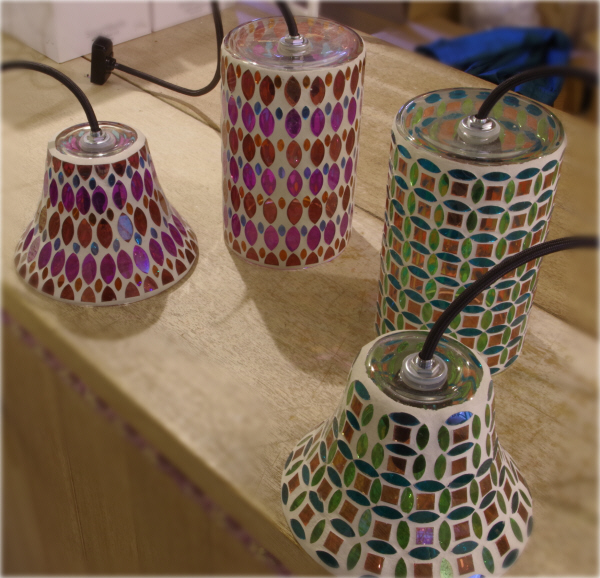 ちいさなガラスチップを透かして光る モザイクガラスの照明に新作が加わりましたので ご紹介いたしますね 筒型と ベル型 ふたつのかたちに カラーは ピンク系とグリーン系の2色 まっすぐな筒型は 直径12cm 全長が68cm こちらのベル型は 直径15cm 全長62cm どちらも 引っ掛けシーリングタイプでコードはブラックのみです 電球は E-17の25Wランプが付属しています さらに明るくされたい方には LED球もご用意出来ます アイランドキッチ...