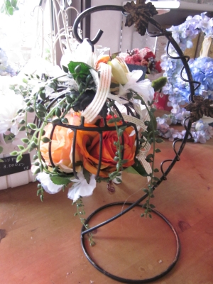 JUGEMテーマ:インテリア雑貨 オレンジ、グリーン、ホワイトの三色を使った、陽光の中に引き立つような自然な風合いのアレンジメントです