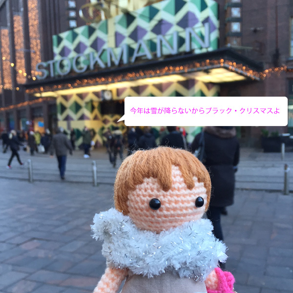 クリスマスイブにもかかわらず、今夜もたくさんのお客様にご来店いただき、心よりおん礼申し上げます。 おかげさまでこの時期は何かと忙しく、夕飯もそこそこに再びお仕事のクリスマスイブの夜。 でも、お客様のご来店に、何だか励まされる思いです。 本当にありがとうございます。 正式な受注メールは明日送信させていただきますので、もうしばらくお待ちくださいませ。 さて、フィンランド出張中のたみ子店長(人形)から、イブのヘルシンキの様子が届きましたよ。 今日訪れたのはハカニエミ・マーケットホール...