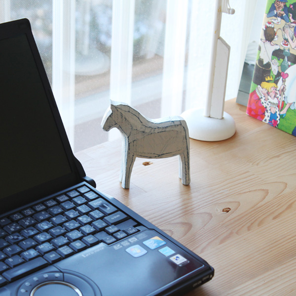 今朝はどんより曇り空です。 どうやら天気の崩れが少し早くなったようです。 でも、そのぶん天気が早く回復し、この週末は冬晴れに恵まれそうです。 さて、こちらはフィンランドから入荷しました白馬の置き物です。 スウェーデンのダーラナホースと一緒に入荷したので、スウェーデン製のようです。 木の手掘りで下地はブルー、その上に白く塗装された白馬の置き物。 幸せを呼ぶ馬「ダーラナホース」のようです。 こんな感じで窓辺に置いてもいいですね。 ただいま12/3(木) 21:00の販売開始に向けて準...