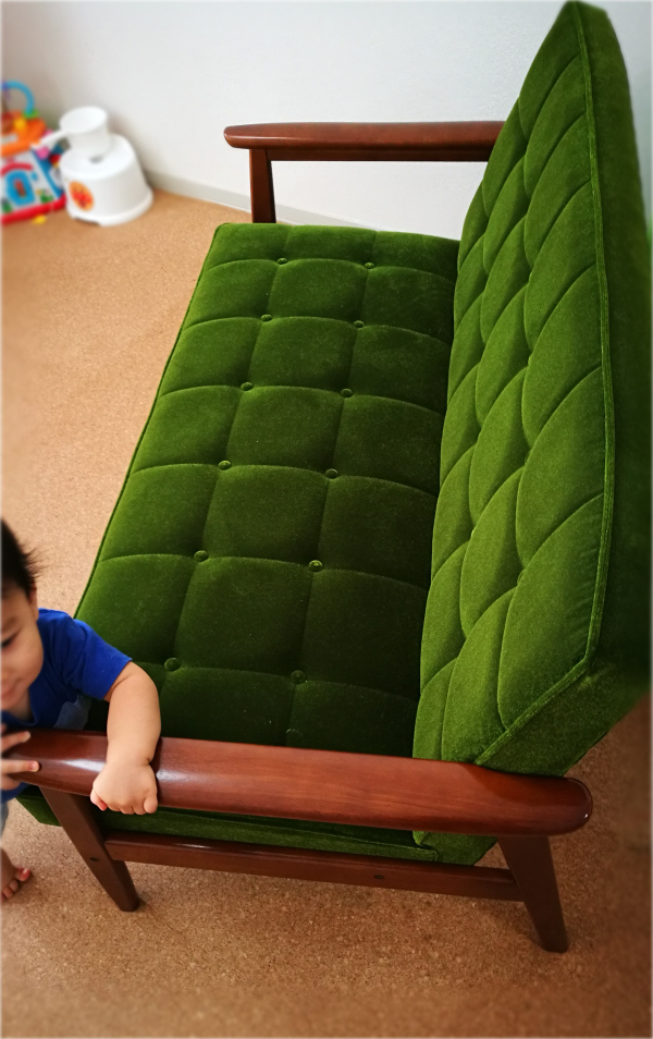 さあ 今日もカリモク60をお届けに 元気いっぱい 行ってきま〜す ♪ お伺いしたのは 小倉北区の Y 様のお宅です 量販店でお求めになったソファーが すぐダメになったとのことで 今回 当ショップにお越しくださいました ありがとうございます ♪ お選び頂いたのは 60ソファーの定番 Kチェア2シーター モケットグリーンです おやっ ・ なんか ちっちゃいおててが 伸びてきまちたねえ〜 あらっ こんにちわ ♪ いちばんに すわりたいのかなぁ〜 ん〜〜 ! と ...