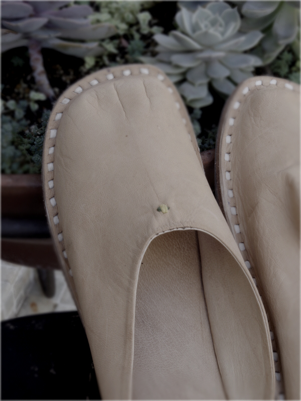 久しぶりに服飾雑貨からの入荷案内です アイテムはレザーサボ 聞きなれない名称ですよね 見た目バブーシュのような感じの 外履きのヌメ革サンダルです ワンポイントのステッチが可愛いですね 季節外れのような気がしますか? わたしもそういう気がしますが 意外とあったかいんですですよ これが ヒールに高さもあり スタイリッシュ 固めなゴム底で 普段使いに何ら問題ありません ただ 雨の日だけは NG 粗めなヌメ革は内側まで回りこみ 足型に合わせてフィットしてゆきま...