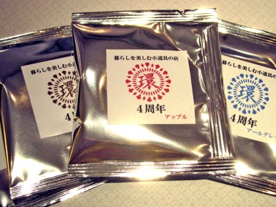 JUGEMテーマ:和雑貨 今日から5年目スタート。 4周年の記念に、環で人気の紅茶をひとつ差し上げております。お好きなフレーバーを選んで下さいませ。 ++-----------------------------++ 40歳を越えて、経験もないのにいきなり開業してしまったせいで、我ながら右往左往しつつ4周年を迎えることとなりました。 ご愛顧下さるお客様のおかげと、家族や友人の支えがあって、この日を迎えられたことを嬉しく思います。 街の景色のひ...