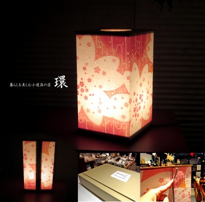 JUGEMテーマ:インテリア小物・雑貨 JUGEMテーマ:和雑貨 手ぬぐいコレクターへ朗報です。 今どきの手ぬぐいは色柄が綺麗なせいか、タペストリー代わりに壁に飾ったり、テーブルランナー代わりに飾ったり、目を楽しませるものとしても人気です。 こちらの照明器具、形状はシンプルな行灯。 手ぬぐいを使うことでシェードが完成するのが特徴。 フレームは竹製。質感は上品。 注染の手ぬぐいを巻けば、光を通して染の濃淡が色合いとなり、ふんわりした明るさのフ...