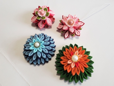 11月第2回は、半くす玉の菊の花を作りました。 菊らしい白や黄色で作られるのかな?と生地を用意していきましたが 選ぶ色が個性的で、それぞれのお人柄が表れる作品になりました。^^ みなさんの技術の上達ぶりも素晴らしいのですが 色を選ぶときも、摘まむときも、楽しみながら作って下さるので、 まるで本物のように、生き生きとしたお花になるのではないかなと思いました。 12月はクリスマス、お正月と、より季節を...