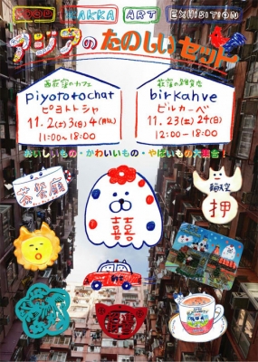 画像をクリックするとイベントページに飛びます!  ↑ ということで! ●11月実店舗OPEN● 11月23日(土)24日(日) 12〜18時   アジアのたのしいセット 第二弾@birkahve  アジアの雑貨マーケット&マユボンヌのぐあいのわるい似顔絵   イラストレーターのNEKONOKOさん企画で 豪華クリエーターの方々がアジアをテーマに2日間だけビルカーベに大集合! たのしい雑貨マーケットになりそうです。 詳細はかわいいイベントページをご覧ください→アジアのたのしいセ...