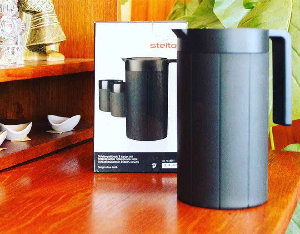 JUGEMテーマ:北欧インテリア デンマークから届いた STELTONのコーヒープレスを 展示しています。 挽いた珈琲豆を淹れ、熱湯をいれ4分。 それだけで簡単に珈琲が入ります。 欧米ではカフェの約半数がこのスタイルで 豆の油分まで余すところ無く抽出できるため 珈琲本来の味わいが楽しめる、と 人気があるようです。 このコーヒープレス、 実はポールスミスとのコラボアイテム。 「Classic with a twist...