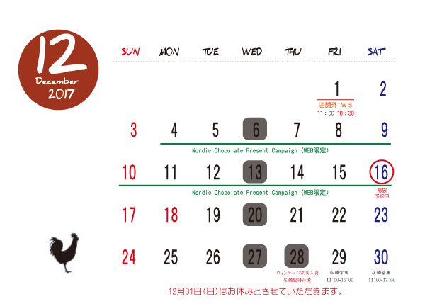 JUGEMテーマ:北欧インテリア さすがにクリスマスには、 と思っていたヴィンテージ便ですが… 市内の郵便局には到着しているものの 配送はどうやら26日になるようです。 EVAさん、ごめんなさい。。。 12月26日にはスウェーデン便が、 12月28日にはヴィンテージ家具が入荷し 今年の北欧便は最終となります。 入荷や打ち合わせに伴い、 営業時間が下記変更となっております。 特にご遠方からお越しのご予定の際は お...
