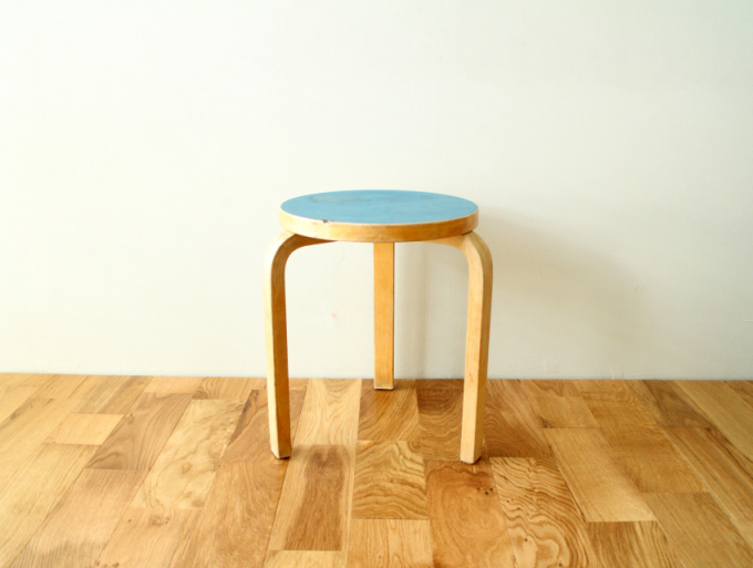 Artek Stool60 50s Blue linoleum / アアルト デザイナー :Alvar Aalto 製造元 : Artek 素材 : バーチ/リノリウム サイズ : 約 座面φ35 × W,D 40 × H 44 (cm) 商品番号:AK09061701 価格:¥41,000- (+税¥3,280-) 送料別途 ヤマト運輸宅急便160サイズ 4枚レイヤ、50年代のブルーリノリウムです。 座面のリノリウムはダメージが見られますがほかにはない風合いが出ています。 塗装も剥げてきており、この年代独特のたたずまいになっています。 傷等多めに見られますが雰囲...