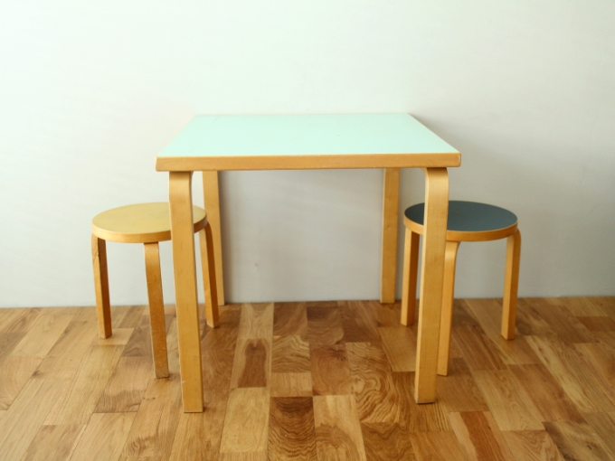 Artek Table 81C (75x75) / Alvar Aalto デザイナー :Alvar Aalto 製造元 : Artek 素材 : バーチ/リノリウム(特注色) サイズ : W75 x D75 x H70(cm) 商品番号:AK07201701 価格:¥80,000- (+税¥6,400-) 送料別途 (分解無)らくらく家財便Cランク (分解有)ヤマト便60kgサイズ 70年代のArtek Table81Cです。 フィンランドのワンオーナー品で、前オーナーが購入時に工場で 特注色にカスタマイズしたスペシャルな一台です。 もともと黒リノリウムだったものの上から特注色でオーバーペイン...