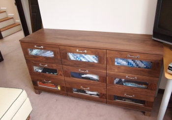 先日お店の近くに住んでいるKさま邸へお届けした カベルネのローチェスト。 活躍してくれている様でとても嬉しいです! 展示と同じウォルナット材でお造りしました。 −展示− 私も同じチェストを愛用しているので 奥様にもデザインや深さのある引出しと 気に入って頂けてとても嬉しかったです(*^_^*) インセットレールが標準仕様のカベルネシリーズ。 ツマ板内にレールが埋め込まれているので 密閉率も高くなり収納した洋服を湿気や虫から しっかり守ってくれます。 そしてKさまに...
