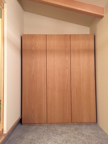 JUGEMテーマ:インテリアコーディネート くらしと家具 HOLM230より 府中家具でお客様からのご依頼をオーダーメイドして シューズボックス(下駄箱)をお届けさせていただきました。 HOLM230らしく、シンプルで木の風合い溢れるデザインをご提案させていただきました。 オーク材オイル仕上げ 取っ手をつけず、プッシュで扉を開けるようデザインしたので、すっきりとした 扉となっています。 早速お客様が収納されたのでパシャリ!! こんなお写真までいただいてすいませんm(_ _)m 中は汚れに強い...