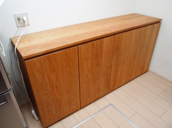 少し前になりますが ご紹介出来ていなかったYさまの キッチンカウンターをご紹介します♪ Yさまのカウンターのイメージはお電話頂いた時から 明確だったのでプランはスムーズでした(^^) とってもシンプルで木目が生きる 4枚扉にほり取手仕様、チェリー材でお造りしました。 まだ明るい色のチェリーもどんどん赤茶色に変化していきます。 サイズはW1750H850D450で 横の冷蔵庫分少し余裕をみてます。 この上にレンジなど機器を置いても 素材感のあるカウンターだからこそ 無...