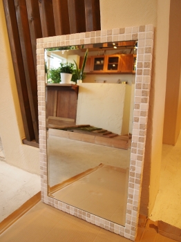 本日、ユーザーのUさまにご依頼頂いた 洗面台上の天然石ミラーが入荷しました。 とっても綺麗に仕上がっています! サイズはW550H900で 以前お造りさせて頂いたミラーと同じタイル そして面取り鏡です。 ↓こちらの洗面台の上に取付け予定です♪ 質感のあるタイルが良いアクセントになりそうです! また施工させて頂く際に取付け後の写真を ぜひご紹介させてください(^^) また展示でも同じく天然石タイルのミラーで 同じタイルの天板で造った洗面台と 合わせてご覧になって頂...