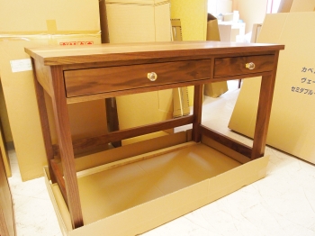 ご注文頂きました家具が 続々と入荷しています! 検品中の家具を少しだけご紹介(*^_^*) まずはMさまのお嬢様のデスク。 ウォルナット材のルッキデスクです(^^) お使い頂いているウォルナット材のチェストに合わせて 置いて頂く予定です。 飽きがこないシンプルなデザインなので 大人になっても長く使えるのが魅力です。 お嬢様がセレクトしたダイヤつまみも ウォルナット材と合わせると 高級感がありとっても素敵です ワゴンも同じ取手でコーディネートしています♪ 1段目...