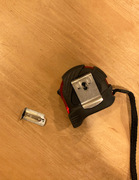絶体絶命ですよ、これ。 ひとり、現場で。 これーーーーっ(泣) 先が折れてて、 しゅるるるーーっと巻き取られてしまった 残りのメジャーはでてきやしません。 敷地の現地調査に出かけていたときのこと。 まさにこれからどんどん測りまっせ〜〜ってタイミングで。苦笑 「ひとり」というのは、もし2人以上(関係者が)その場にいれば おそらく人数分(もしくはそれ以上!?笑)のスケールがあると思われ、 らくらく乗り越えらるピンチなのですけれど...
