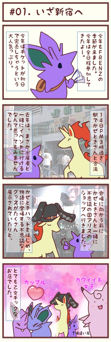 進撃の八頭身に空耳がついてるwwwこれはひどいwwクソワロタ(・v・;;)なんか嬉しいー\八頭身だ/ (゚Д゚)〜〜〜ふれんずー〜〜〜先週行われたオフライン映像イベント「FRENZ」のオフレポ漫画、今年もゆっくりやっていきまーす(・v・)ちなみに、オフレポ成分表記・出展作品20%・イベント期間の出来事75%・カフェイン5%となっております。※登場人物・出展作品とかは勝手にポケモンで再現されています。※作品感想につきましては、赤兎の絶大なる独断と偏見と早く動画作りたい衝動の為、出展された作品の一部を、ザックリと紹介し...