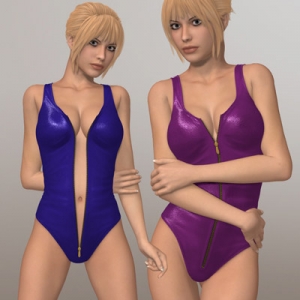 V4時代のFRISKY SWIM2という水着です、Renderosityで販売されています。 上記水着のマテリアル でローラに着用させるとAUOTO FITツールで自動で着用されますが 良く見ると真ん中の縦のジッパー部分が開き気味になっております。 この状態で強硬してスムージングモディファイをかけても穴の空いている部分は 修正されるが、水着の細かい部分のデザインは崩れます。 そこでAUOTO FITツールでなく、違う方法で水着を着用させます。 [やり方] 一旦、着用した水着は削除してもう一度FRISKY SWIMを呼び出しますが G2に...