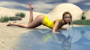 前回の記事でV4の水着をG2仕様に作成したので今回は 砂漠にあるオアシスでのピンナップシーンを作ってみました。 [お題] 水辺に写るローラ1 [お題] 水辺に写るローラ2 [お題] 水辺に写るローラ3 JUGEMテーマ:3D CG