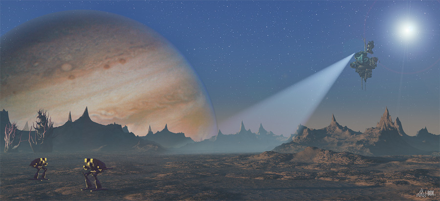 JUGEMテーマ:3D CG レンダリング:Vue10studio +Photoshop 木星は写真を合成。ドローンは3D-Coatでモデリング。