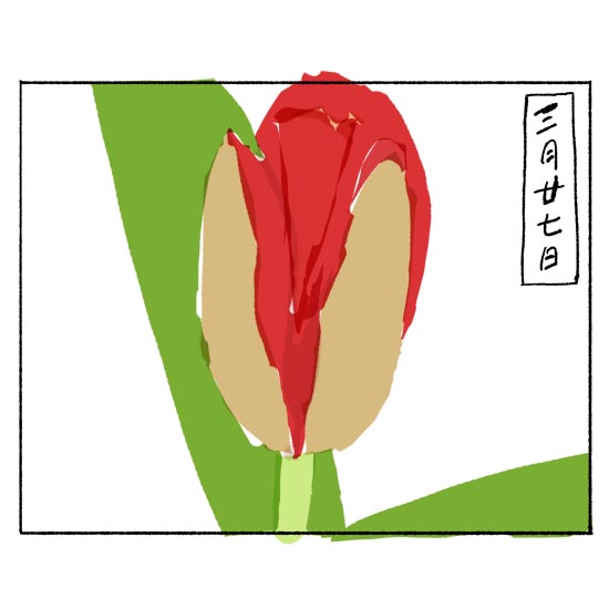 JUGEMテーマ:絵日記★ チューリップが今にも咲きそうだ! 飯田研人のイラストHPはこちら(kentoiidaillustrations.tumblr.com)です。 お仕事のご依頼ご相談お気軽にどうぞ。